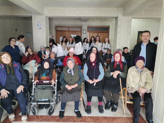 Studenții organizatori au susținut un program muzical specific sărbătorilor Pascale și primăverii care a sensibilizat și bucurat totodată cei 42 de bătrâni și o parte dintre lucrătorii centrului.